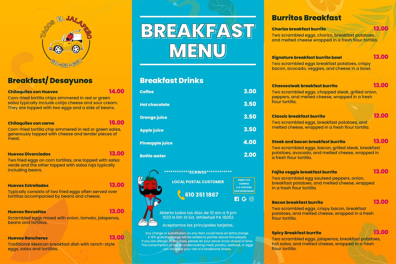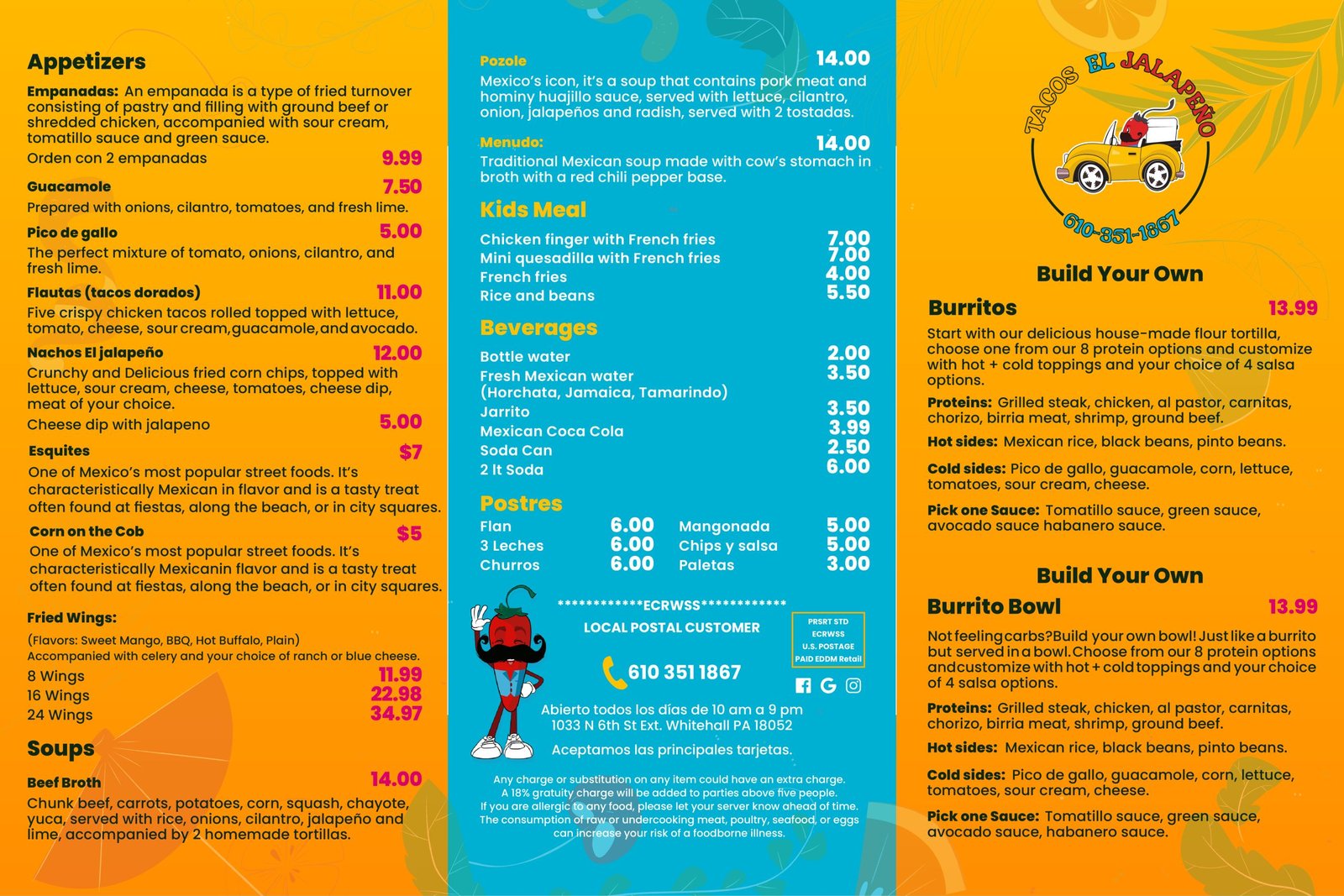 Whether it’s a family dinner, a night out with friends, or simply your craving for authentic Mexican flavors, Tacos El Jalapeño is ready to serve you. Reserve your table now and let us bring the spice, flavor, and warmth of Mexico to your dining experience