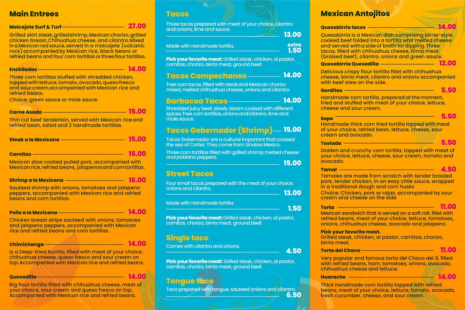 At Tacos al Jalapeño, every meal is more than just food it’s a celebration of authentic Mexican tradition. From sizzling tacos and hearty plates to refreshing drinks and sweet treats, we craft each dish with passion and freshness. Whether you’re sharing with friends, dining with family, or treating yourself, your unforgettable journey begins the moment you take the first bite